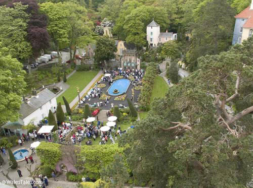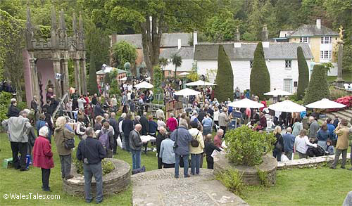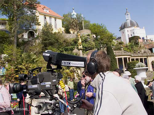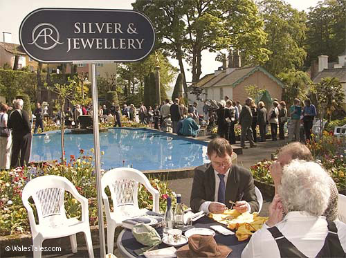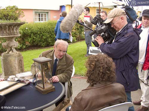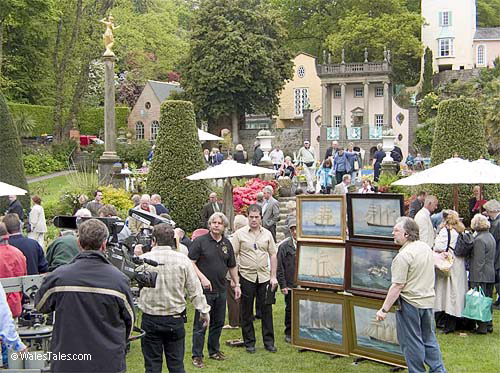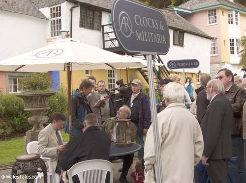 The UK Antiques Roadshow rolled into Portmeirion under fair skies on Wednesday, May 12 2004. Crews from the Roadshow had been laboring laying down cables, bringing in tables and chairs, and working out logistics since Monday morning. Nearly 30 years old, the Antiques Roadshow is one of the most popular of BBC programs.