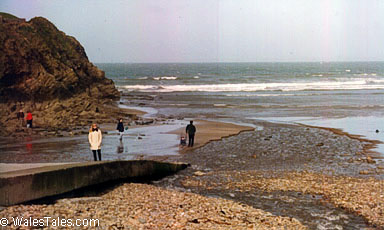 We learn about a boulder to the right in the sea called Stinking Rock. Unfortunately (or maybe fortunately) it turns out that the rock doesn’t stink at all. Instead, Carreg Edrywy, on the point of old Morfa Head, is called by locals Carreg Drewi . If you cut the “E” off of the front of “Edrywy” you’re left with “drywy” a homonym for “drewi” meaning stink. Hence the local name for the feature: Carreg Drewi or Stinking Rock! Edrywy may have been a name for the river or the district.