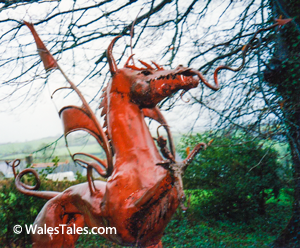 Alby the silversmith, looking like a buccaneer of old, greets us. We tell him our tale of woe. He, thankfully, is appalled at our treatment by the Boathouse crew (“You mean they didn’t let you in?!”). In turn, we purchase several souvenirs, including a tiny silver dragon (cast, ironically, in London), two pairs of cufflinks (one has a spiral design), and a locket with an intricate Celtic knot design. Alby tells us we are only his second customers of the day. The day before he’d had none (I wonder how many the Boathouse had). We part happily, each of us richer than before. Tenby (which Bronwen Petersen advised we shouldn’t miss) seems so close we decide to go for it. We hope to stop in at a restaurant called Pam Pam, which is run by an American man and his Welsh wife. We get as far as Red Roses before the overcast sky turns a bruised brown, and we turn the Honda’s prow toward Haverfordwest.